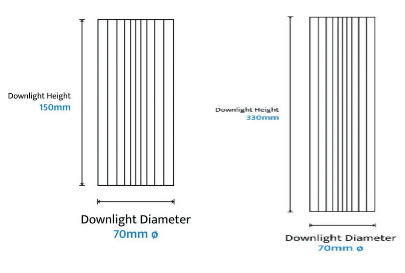 • Dimensions: 70mm wide x 150mm high or 300mm high