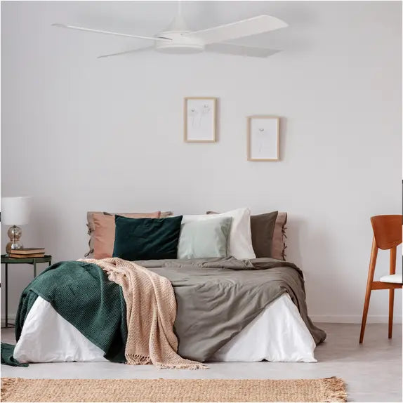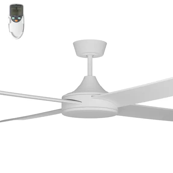 With 4 ABS blades that will not rust, corrode, or fade and are aerodynamically designed for greater airflow this ceiling fan is a great looking design with high performance air flow. Great for alfresco or outdoor areas, main bedrooms or living areas. Complete with a Remote Control, however a 3 speed wall controller version is also available. LED light version also available in Black or White.